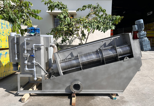 The Screw Press is an efficient and reliable mechanical dewatering equipment designed to separate liquids from solids in a wide range of industrial and municipal applications. Using a slow-speed screw mechanism, the system compresses sludge or slurry, extracting water while minimizing energy consumption and maintenance needs.